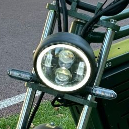 7” H4 LED Far – 6000K-6500K beyaz ışık, alüminyum kasa. Flaşörlü Ön-Arka Sinyal ve aktif fren lambaları. DC/DC Dönüştürücü: 60/72V – 12V, 10A çıkış gücü.